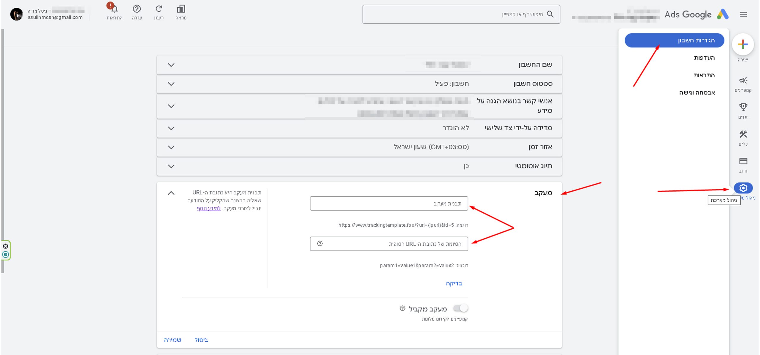 בחשבון גוגל אדס, ניתן להגדיר את הפרמטרים בשני מקומות: